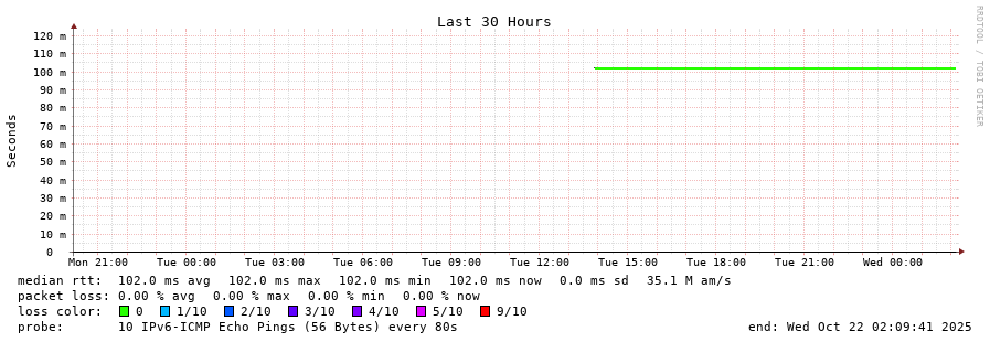 traceroute to 2001:b68:d:0:ee08:6bff:fe73:2da0 (2001:b68:d:0:ee08:6bff:fe73:2da0), 30 hops max, 80 byte packets - Generated at 2025-10-21 18:15:02