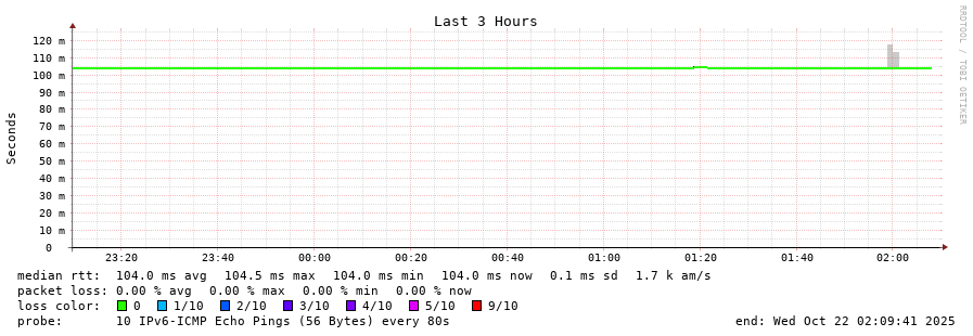 23 > 2001:b68:d::28 (2001:b68:d::28) [AS2108] 103.716ms 103.624ms 103.667ms
