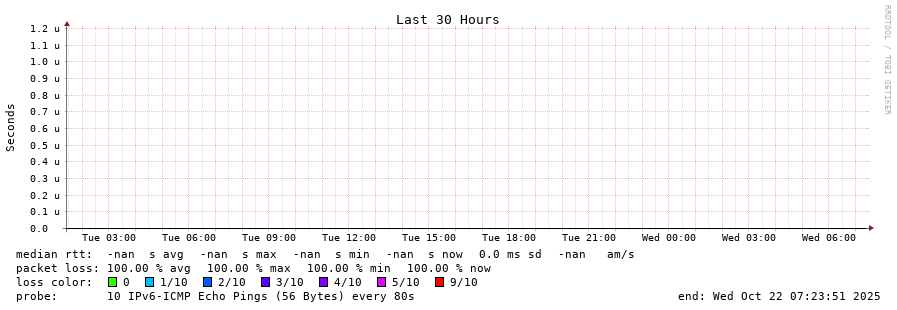 traceroute to fd9b:f75:a3d5::2 (fd9b:f75:a3d5::2), 30 hops max, 80 byte packets - Generated at 2025-10-21 20:30:01