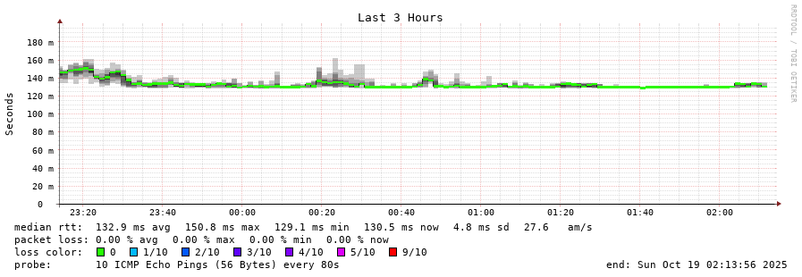 11 > 100.64.192.48 (100.64.192.48) [*] 132.050ms 130.910ms 131.679ms