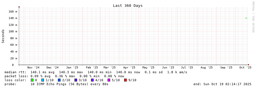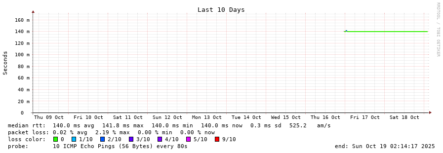 traceroute to 190.105.0.2 (190.105.0.2), 30 hops max, 60 byte packets - Generated at 2025-10-18 08:45:01